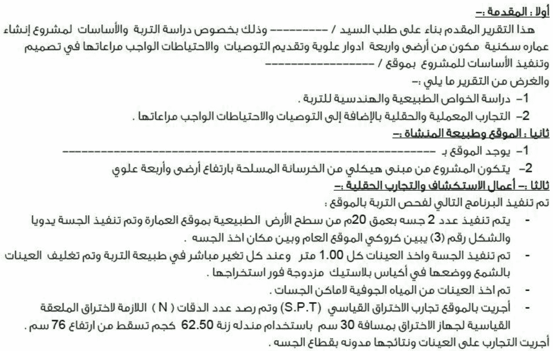 فحص التربة وتقرير فحص التربة و الجسات بالتفصيل أسود البيزنس