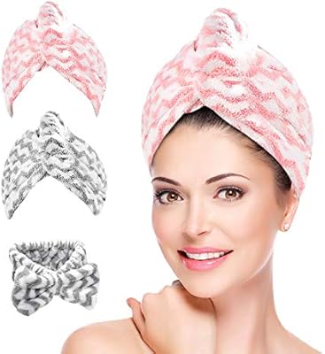 فوطة شعر فوطة ملفوفة توربانا عبوة من 3 فوط مصنوعة من الألياف الدقيقة سريعة الجفاف قبعة استحمام ناعمة مع زر وغطاء شعر فائق الامتصاص لشعر طويل مجعد وسميك ومضاد لخشونة الشعر Amazon Ae